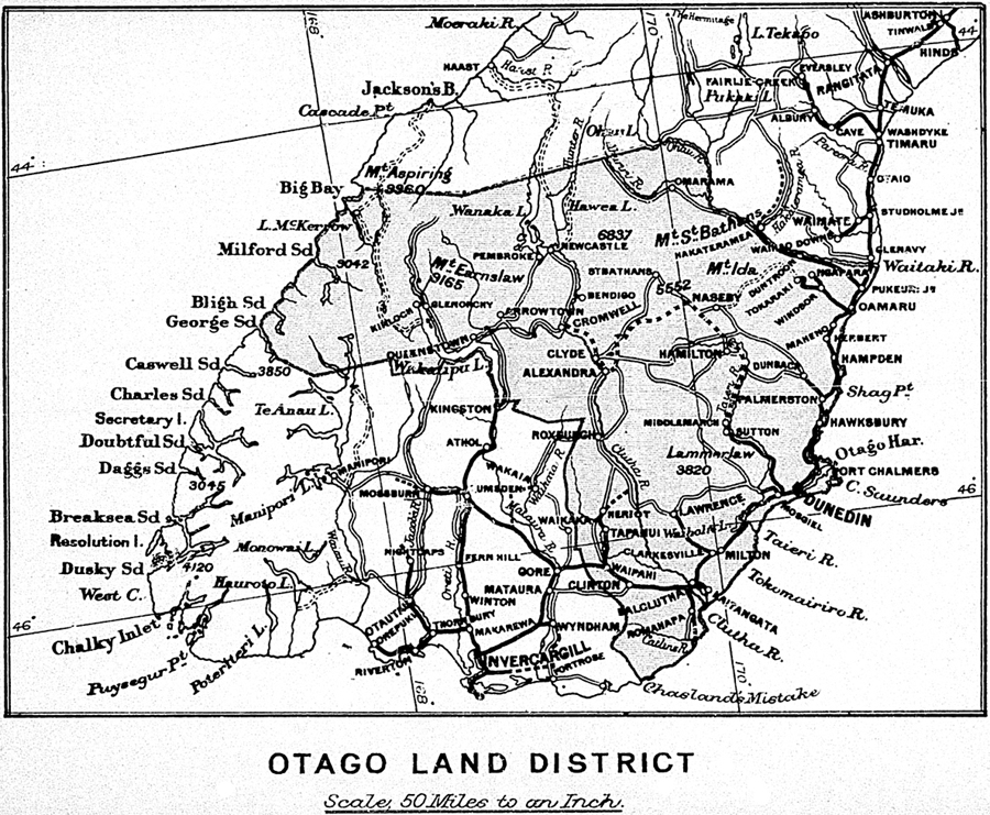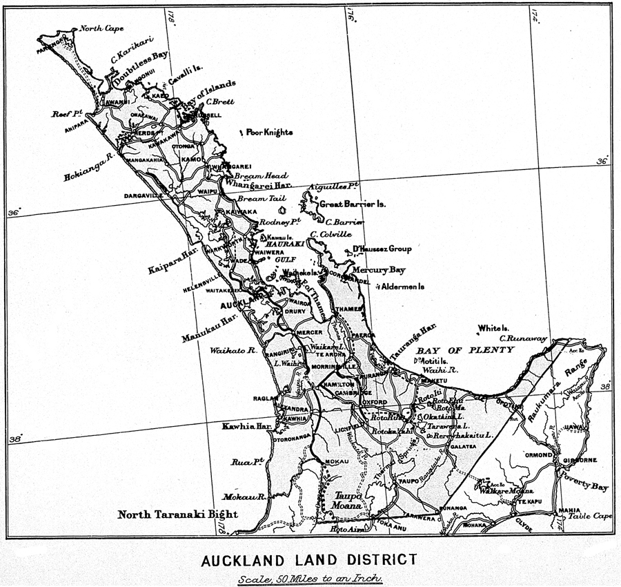 The Proclamation of Captain Hobson on the 30th January, 1840, gave as the boundaries of the colony the following degrees of latitude and longitude: On the north, 34° 30' S. lat.; on the south, 47° 10' S. lat.; on the east, 179° 0' E. long.; on the west, 166° 5' E. long. These limits excluded small portions of the extreme north of the North Island and of the extreme south of Stewart Island.