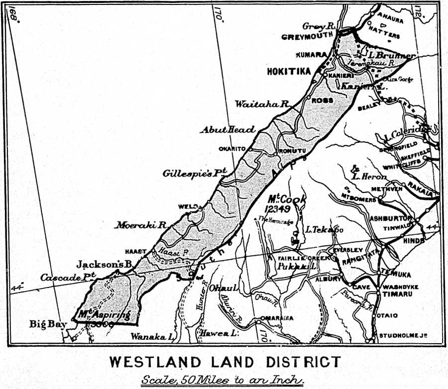 New Zealand is, besides, a mining country. Coal is found in immense quantities, chiefly on the west coast of the Middle Island. Gold, alluvial and in quartz, is found in both islands, the yield having been over forty-eight millions sterling in value to the present time. Full statistical information is given further on, compiled up to the latest dates.