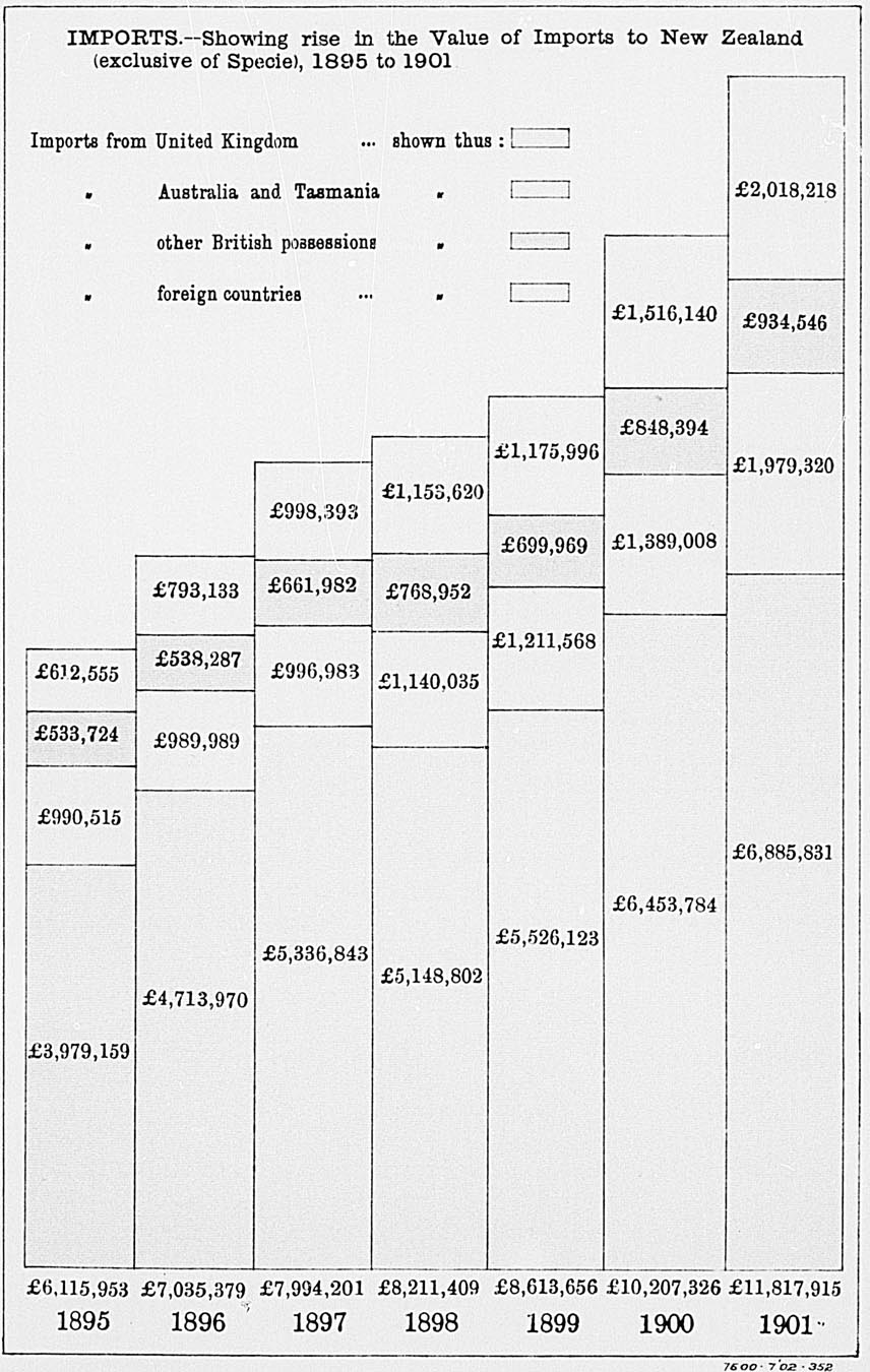 these there were in December. 1901, 3,273 children attending the Native schools, nearly all maintained by Government, 774 at industrial schools and orphanages, and 2,899 scholars at high schools. 1901. Up to 31st December, 1901, premiums amounting to £11,856 had been received, while claims paid and in course of settlement totalled £2,428. ** The actual amount paid in pensions on the payments in each financial year were- in 1891-92, £30,000; in 1892-93, £200,000; in 1893-94, £250,000; in 1895-96, £150,000; in 1896-97, £150,000; in 1897-98, £300,000; in 1898-99 securing annuities amounting to £31,189 per annum. | ||||||||